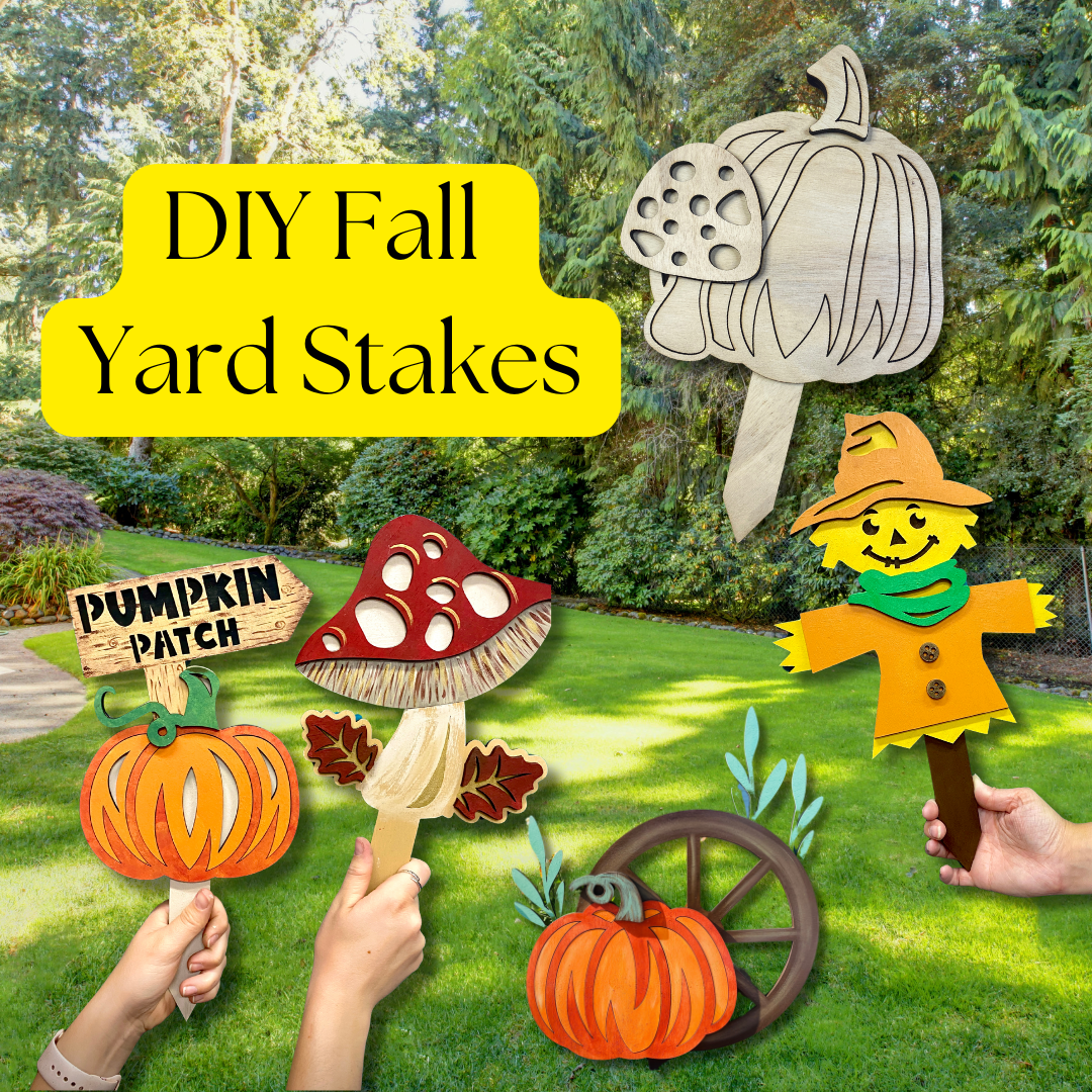 Personalize your outdoor space or indoor plants with our 3D Fall Yard Stakes! Absolutely no experience needed to create this project. These fall yard stakes are a super fun and easy project to paint! Purchase just the blank project, or get a full kit for $5 more.